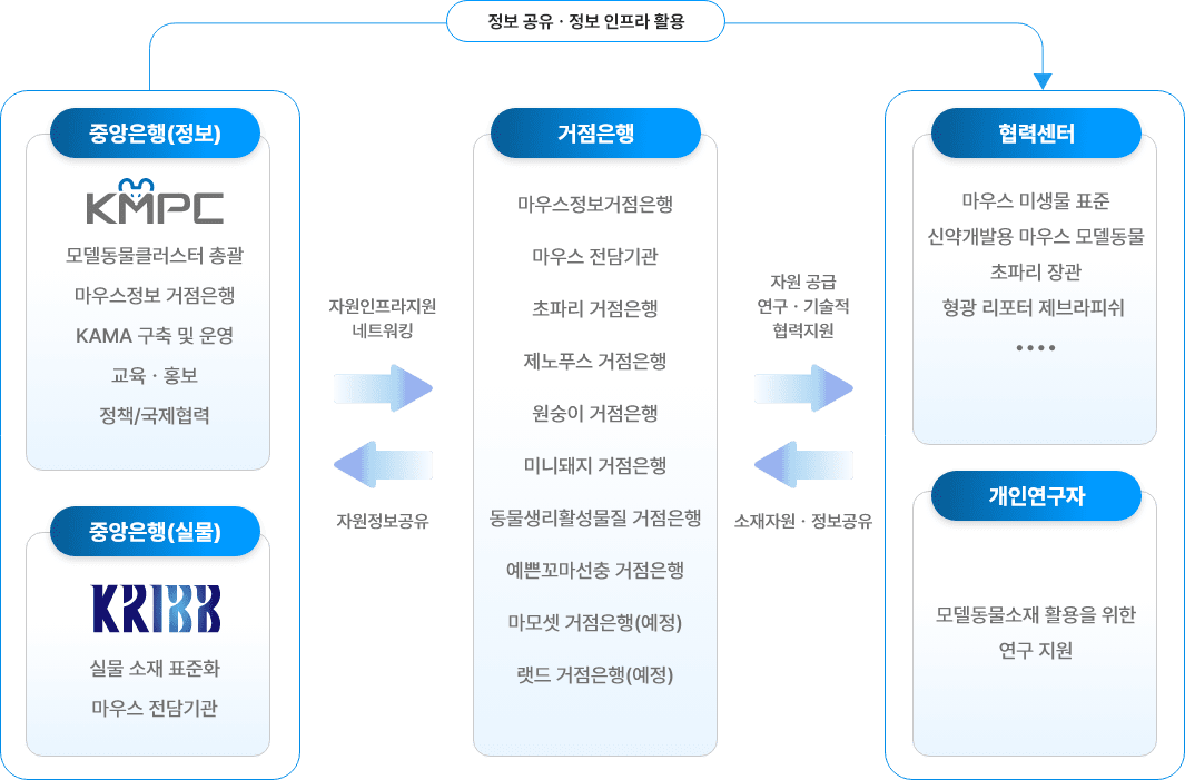 모델 동물 자원의 분양과 정보 공유를 위한 인프라를 구축하고 있습니다.