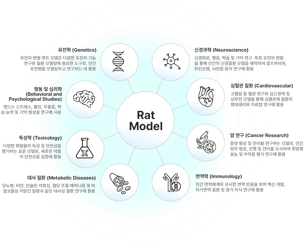 유전자 변형 랫트 모델은 다양한 유전자 기능 연구와 질환 모델링에 중요한 도구로, 인간 유전병을 모델링하고 연구하는 데 활용